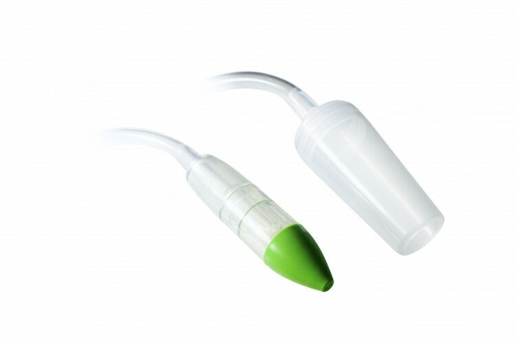 - Varful partii colectoare este cauciucat, confectionat din material moale, elastomer thermoplastic TPE, se aseaza in orificiul nazal si se face extragerea secretiei.
