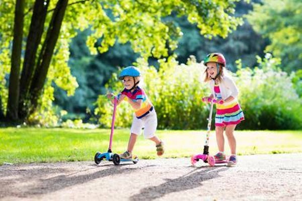 Mersul pe trotineta ajuta copiii sa-si dezvolte abilitatile motorii, sa-si coordoneze miscarile si sa-si mentina echilibrul.