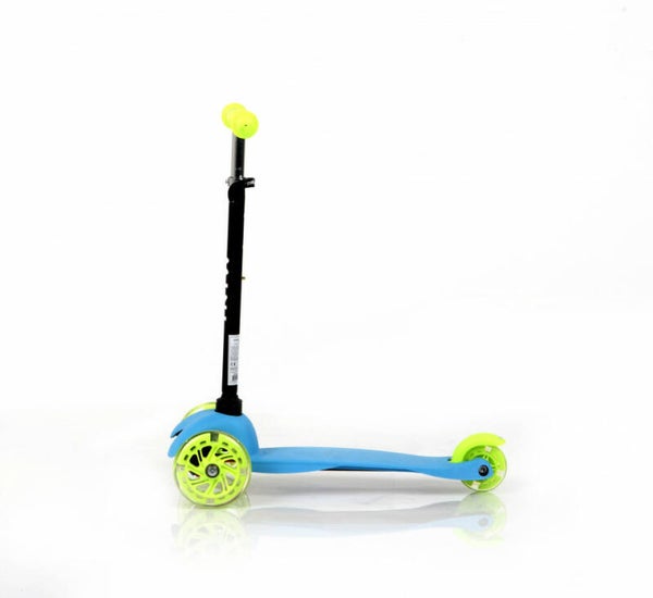 Trotineta usoara pentru copii SCOOTER MINI are 3 roti pentru o stabilitate mai buna, care sunt echipate cu leduri care se coloreaza in diferite culori, cand se merge pe ea.
