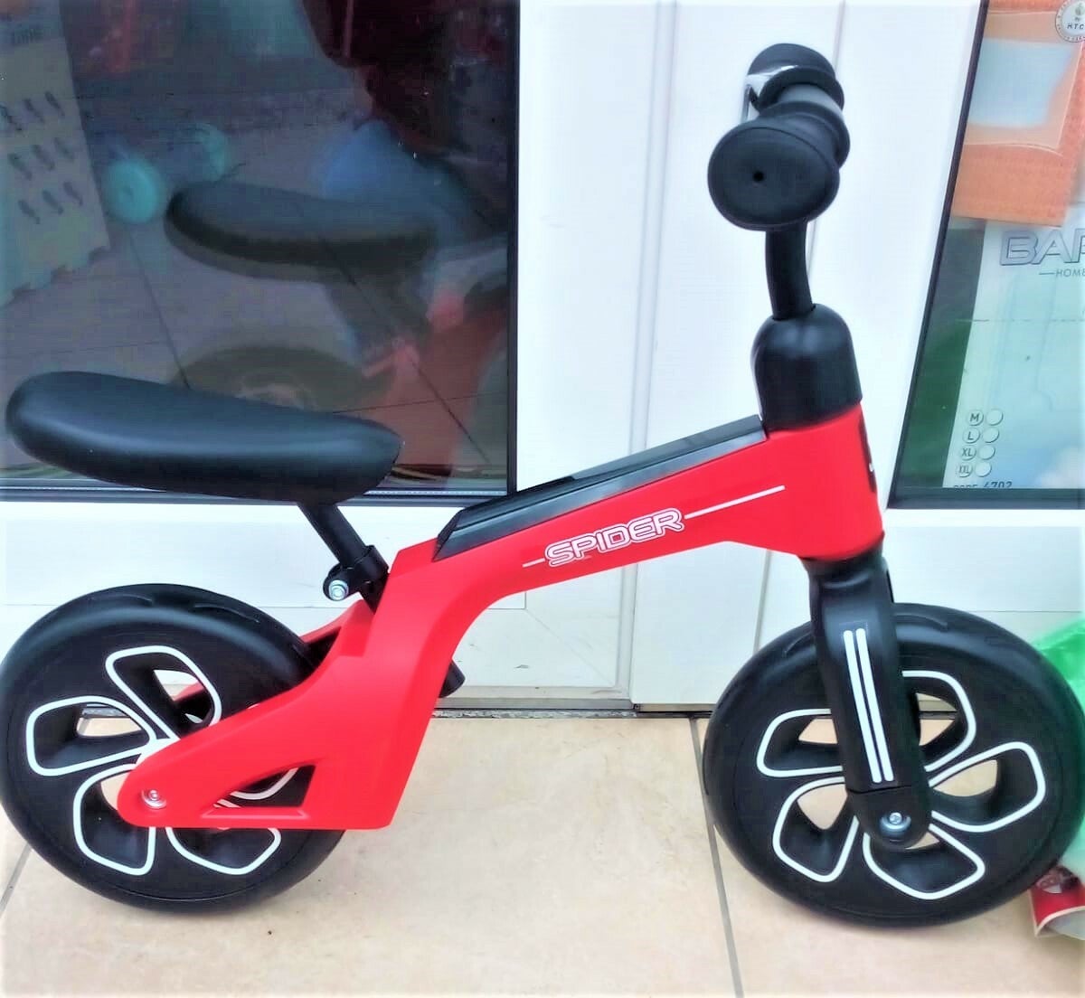 Bicicleta pentru echilibru Spider ajuta copilul sa isi dezvolte abilitatile motorii si sa isi mentina echilibrul. Este o bicicleta fara pedale, ce face mai usoara trecerea catre bicicleta clasica.