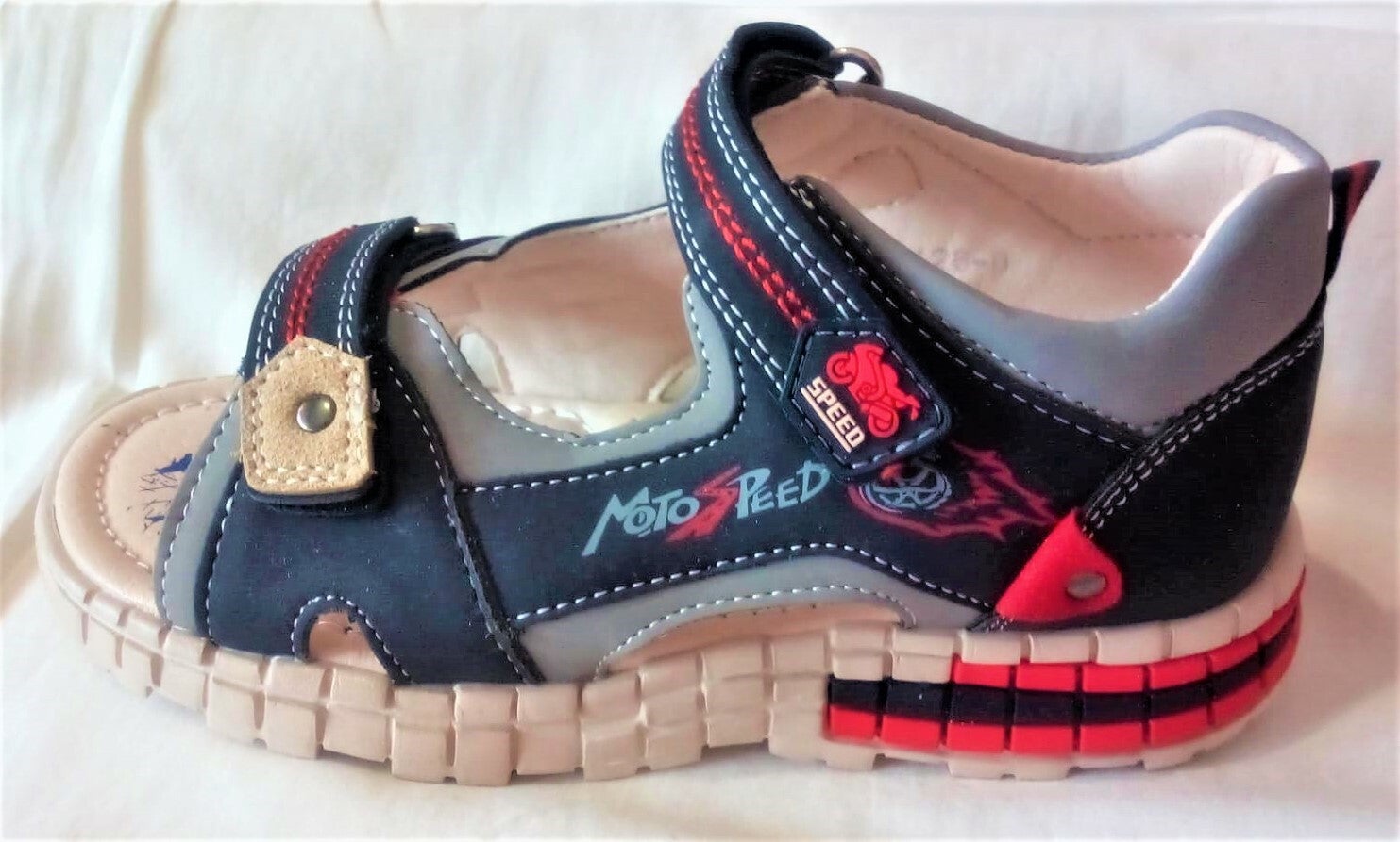 Szurke-piros gyermekszandál.