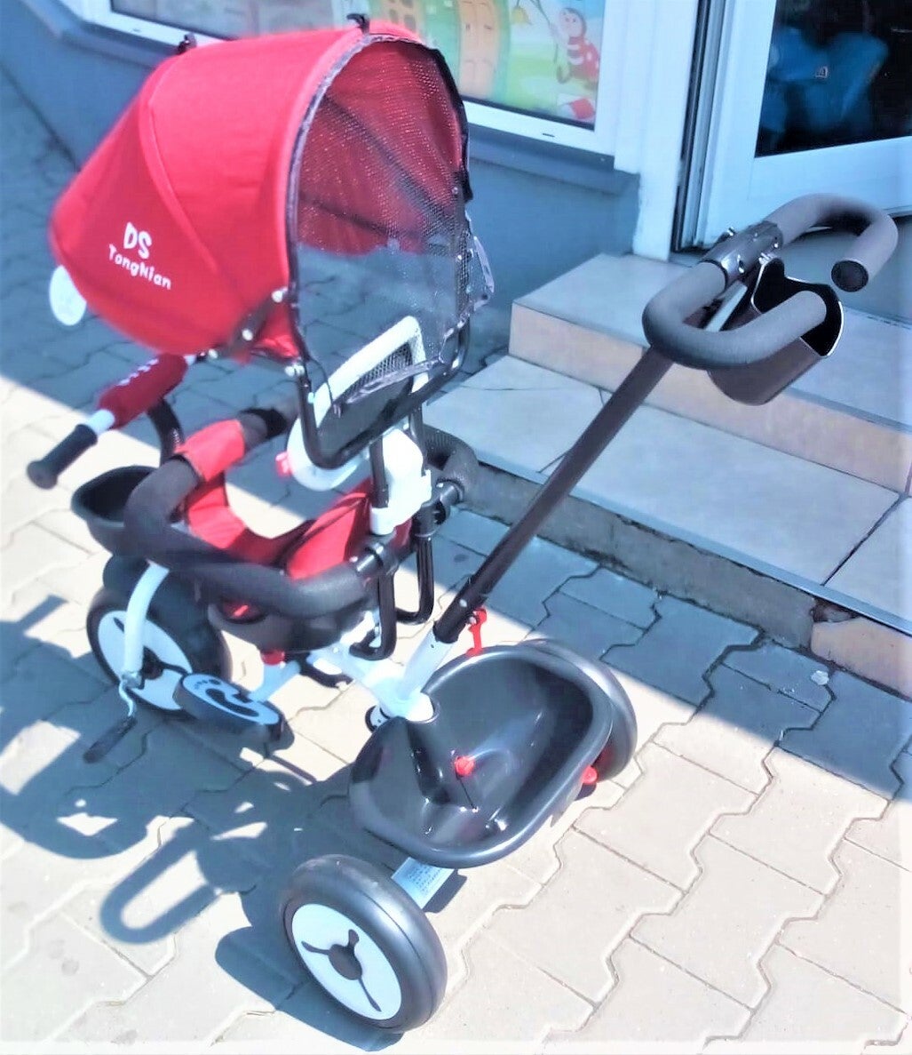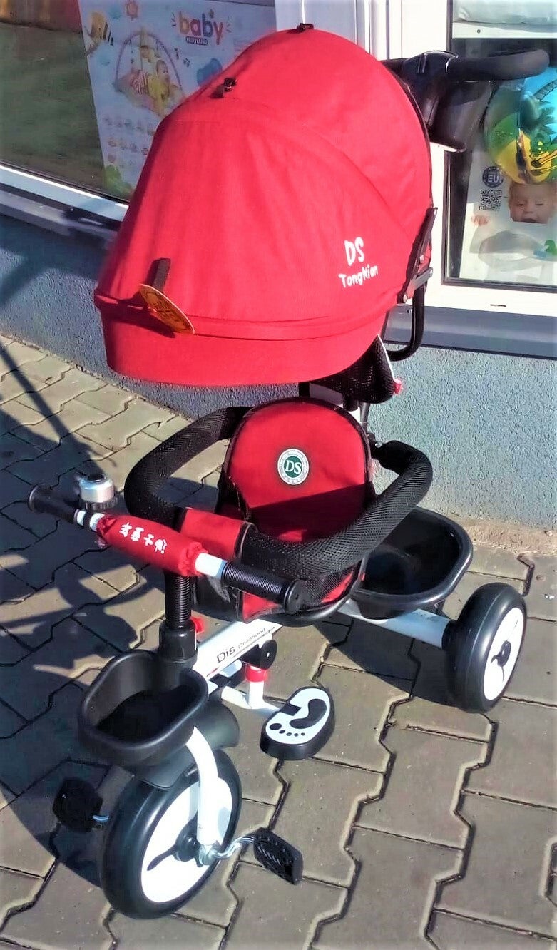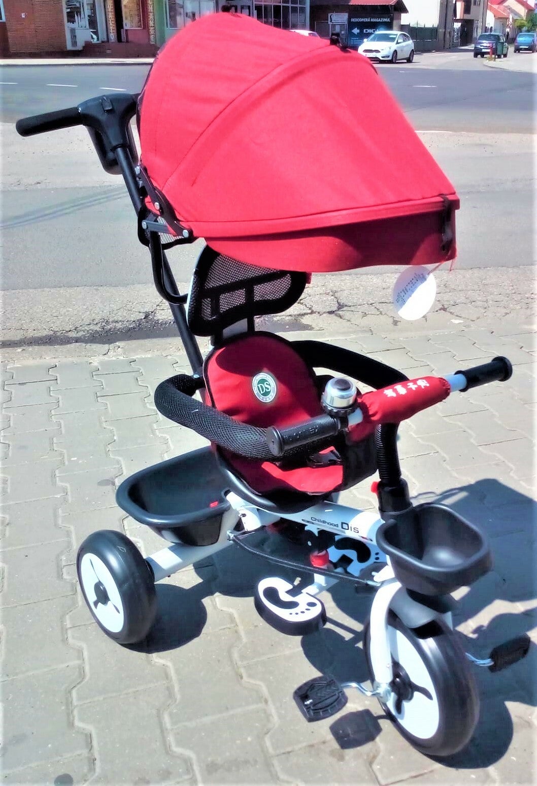 3 kerekü fémvázas tolható piros DS Dis Childhood tricikli kaucsuk kerék gumival.