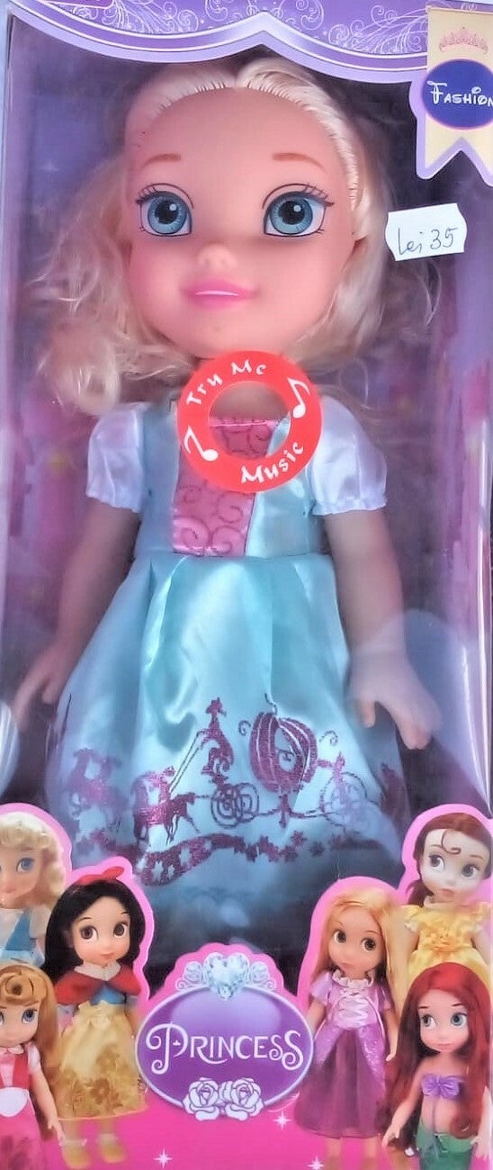 Papusa printesa confectionata din plastic si cauciuc in zona capului. Papusica este alegerea ideala pentru orice fetita careia ii plac printelese, ea are un lantisor cu un diamant pe piept care apasat va canta. Papusica este usor de purtat de copii avand 35 de cm inaltime.