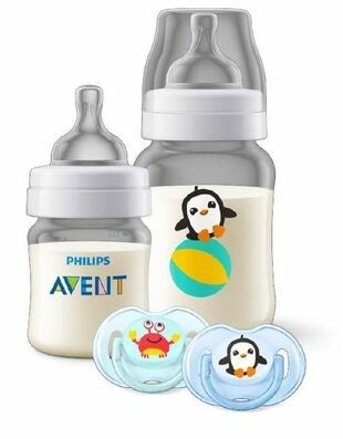 Acest set cadou Philips Avent Classic+ include un biberon Classic+ transparent de 4 oz, un biberon Classic+ cu model de 9 oz si doua suzete cu model cu animale asortat.