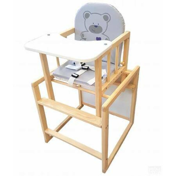 Klups Aga natúr fa, szurke etetőszék.