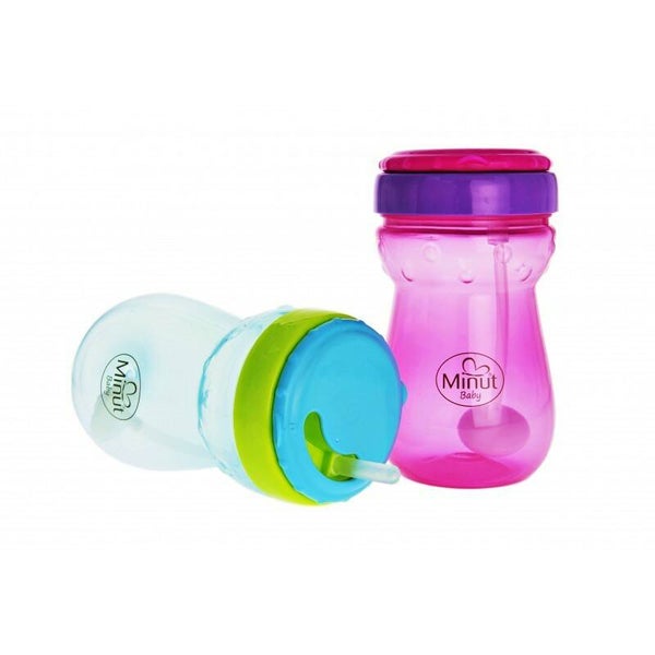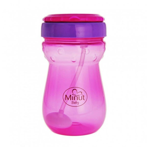 Minut Baby szívószálas csepegésgátló kiskulacs, rózsaszín-lila.