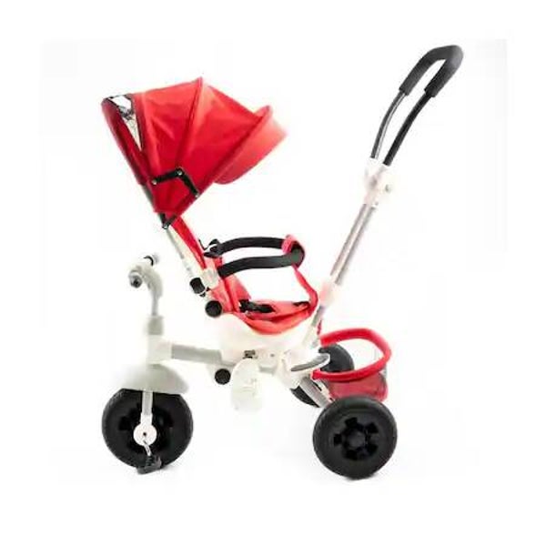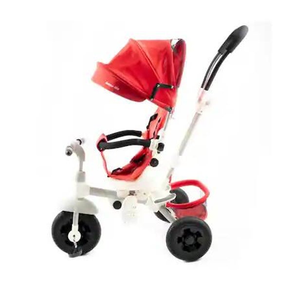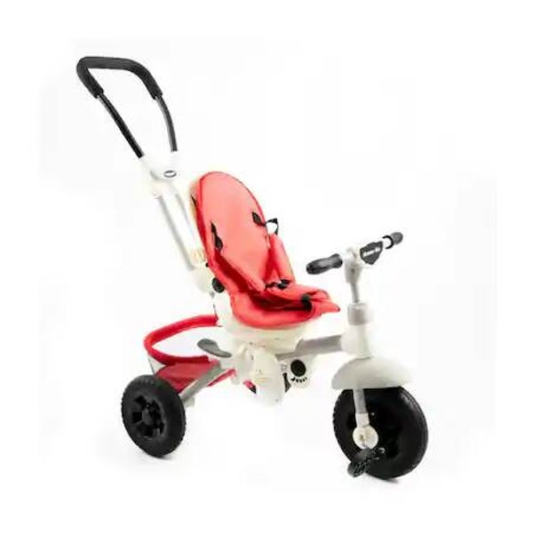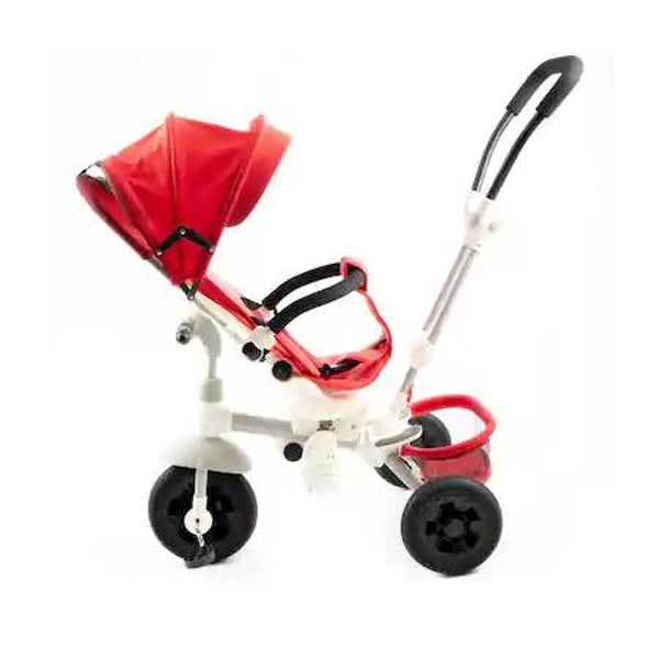 A tricikli hárompontos biztonsági övvel, kellemes üléssel és nagy napernyőkkel van felszerelve.