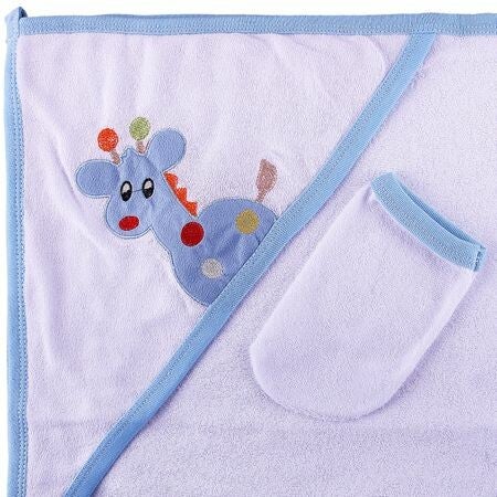 Prosop baie cu capison si manusa bebe, alb/bleu.