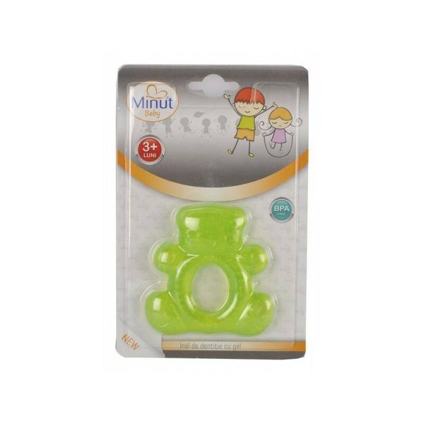 Inel dentitie ursulet cu gel 3+ MinutBaby, verde.