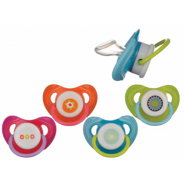 Suzeta Minut Baby disponibila in 3 marimi (0+, 3+, 6+) si 4 culori (albastru, roz, portocaliu, verde)