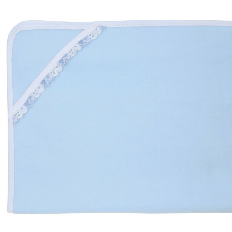 Bársonyos puha bébitakaró csipkével, égszínkék.