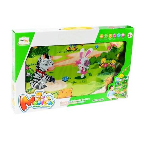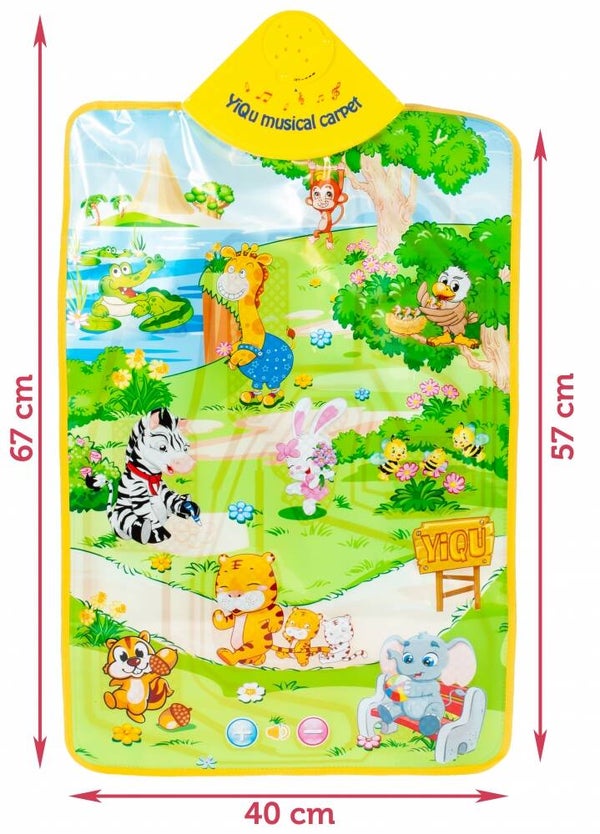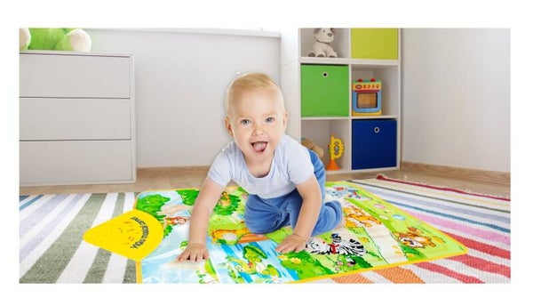 Echipat cu 13 sunete de animale si melodii fericite al caror volum poate fi ajustat. Accesorizat cu un maner special pentru a putea fi montat usor pe perete. Un centru de activitati fantastic care va incanta orice copil mic. Vom gasi acolo 13 puncte de sunet, datorita carora copilul va putea descoperi primele animale. Doar apasati pe caracterul potrivit, iar covorul ne va spune numele animalului de companie si sunetul caracteristic fiecarui animal. In plus, vom auzi si melodii fericite , al caror volum poate fi usor ajustat. Datorita manerului special, covorul poate fi montat pe perete - va fi un decor suplimentar, colorat in camera copilului.